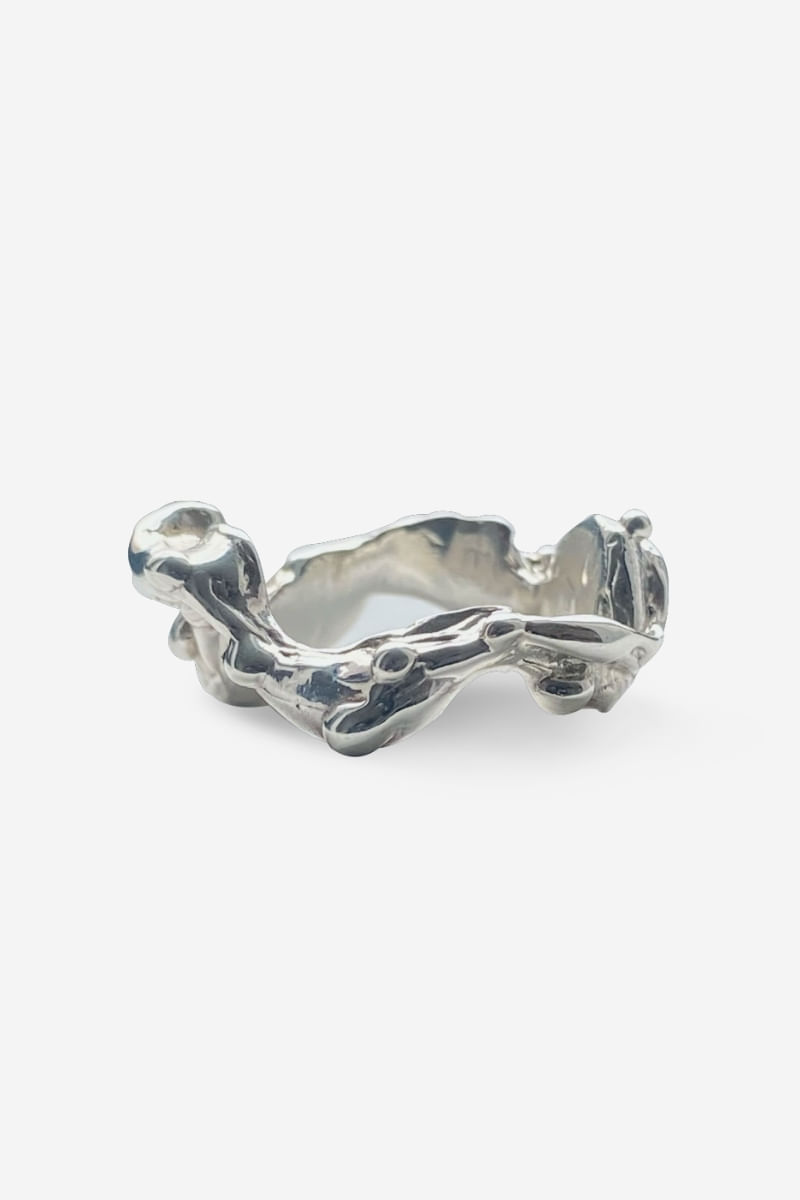 Anillo en plata ley 925 de textura orgánica.Diseño inspirado en las formas líquidas del agua en movimiento.