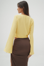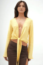 Top manga larga de amarrar con escote profundo