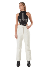 Body negro con bordado crema, corte alto en V y delantero asimétrico.