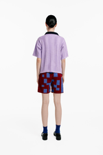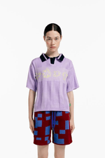 Camiseta tipo fútbol en Hilo Hipoalergenico en color azul con print asteríscos rojo ocuro . Fit Clásico con detalles deportivos. Tejido ligero con textura de franjas, terminado y bordado a mano. Made in Boyacá, Colombia.