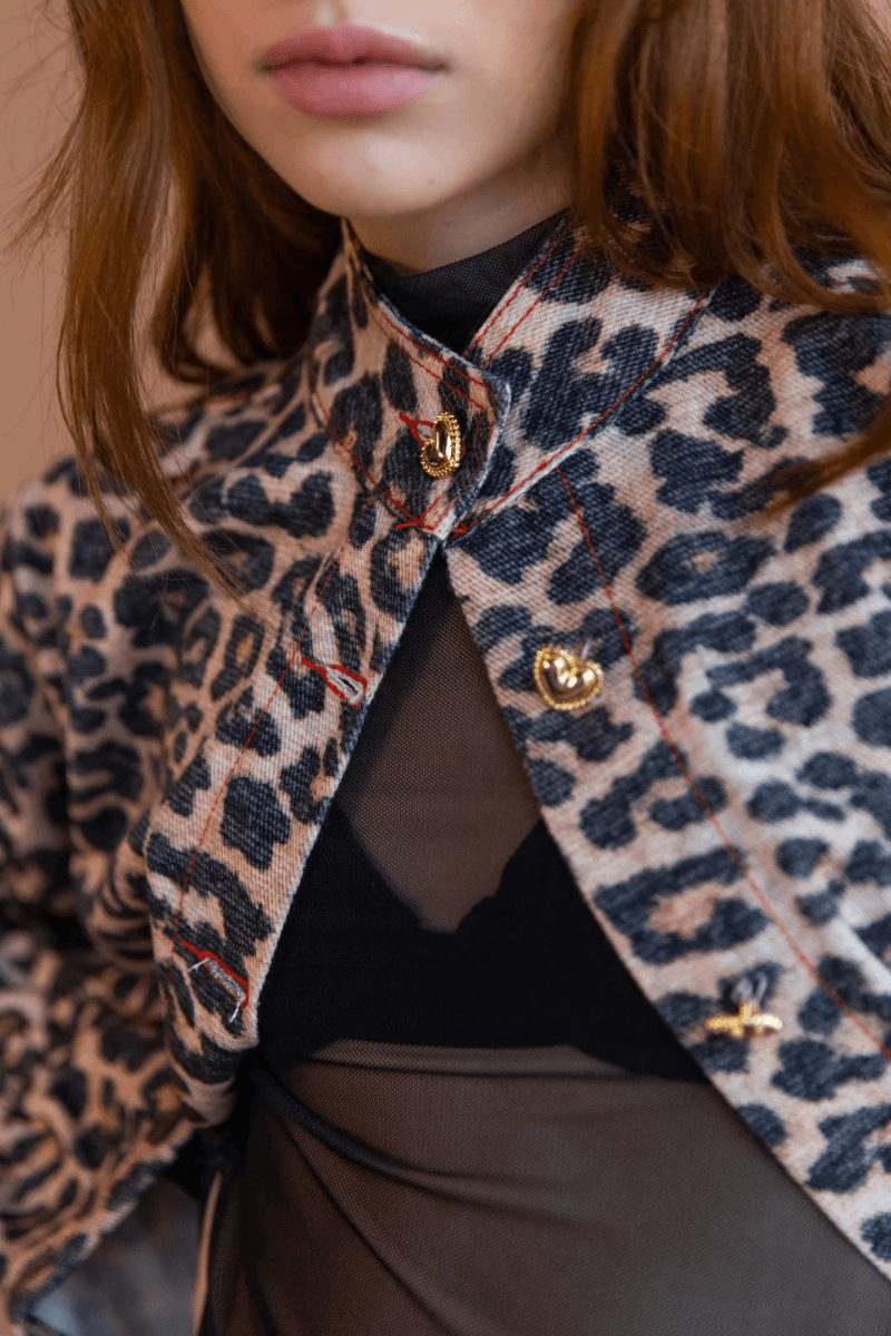 Chaqueta Wild Amore, mezcla una silueta clásica de Flow con el animal print esta elaborada en en dril de algodón estampado