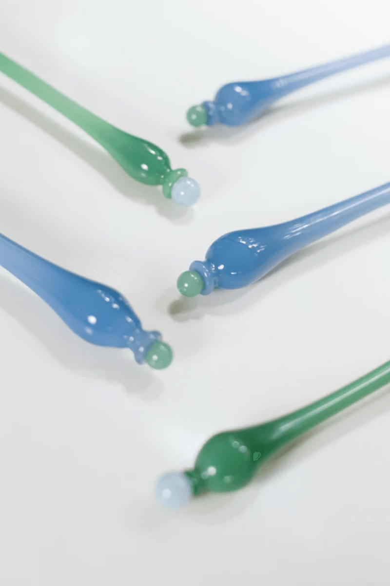 La Costal Blue Serving Spoon, vendida por unidad, está hecha de vidrio soplado azul y una delicada piedra aventurina semi preciosa. Es el complemento perfecto para lo que sea que estés sirviendo: ensaladas, curris, arroces.