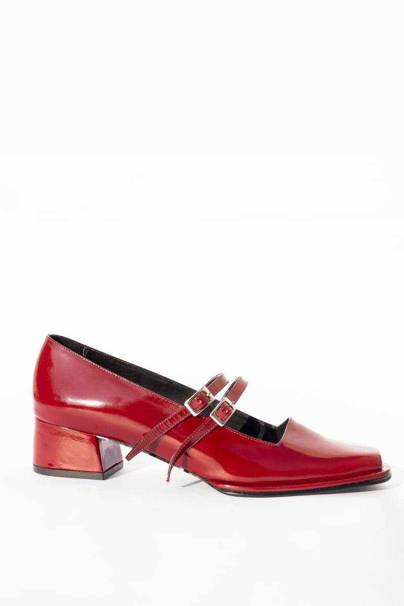 The Mafalda Cherry heels are made of cowhide leather (patent leather), with a heel height of 3.5 cm and a rubber cap, and the interior is lined with black leather that allows them to be soft and comfortable to the touch. The black neolite sole is embossed with the brand logo.