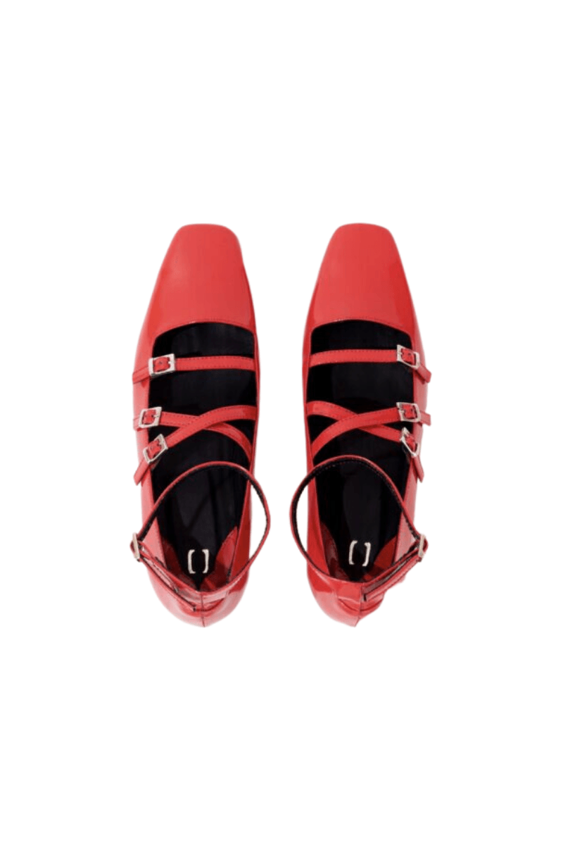 los tacones mary jane estan hechos en cuero vacuno (charol), altura del tacon 3,5 cm con tapa en goma, interior forrado en cuerobadana negra que permiye que sean suaves y comodos al tacto, suela neolite negra contramarcada con el logo de la marca