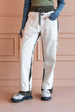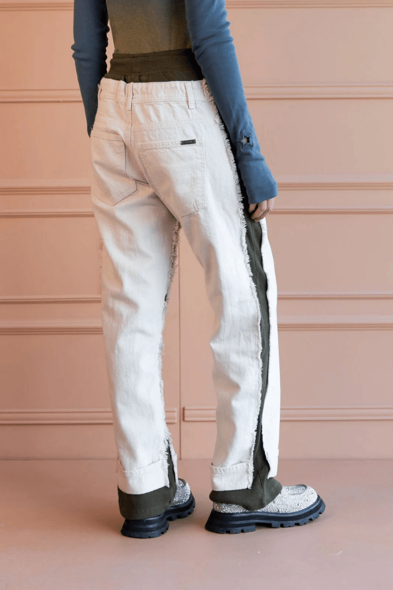 Este Jogger combina lo mejor de dos mundos: confeccionado en suave rib para máxima comodidad, con detalles en denim superpuestos al frente y la espalda que le dan un look urbano y moderno