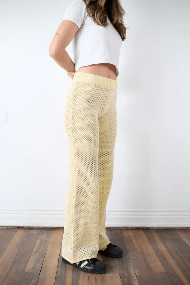 Pantalon amarillo tejido, un best seller.