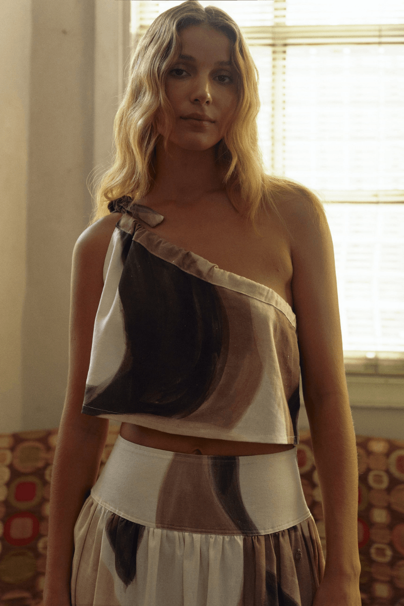 Top de amarrar en el hombro. Su talla es ajustable ya que el lazo se puede aflojar para dar mayor o menor amplitud. Úsalo por el lado de tu preferencia <3.