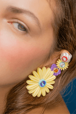 Aretes medianos en forma de margarita con detalle de cristal — un símbolo de pureza, nuevos comienzos y la belleza de la simplicidad. Representan honestidad, lealtad y amor verdadero.
